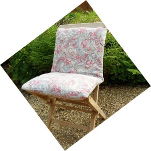 ..and what a great way to make a wooden garden seat comfortable, Marie has used Ashley Wilde pink floral fabric to make the inviting looking cushions.