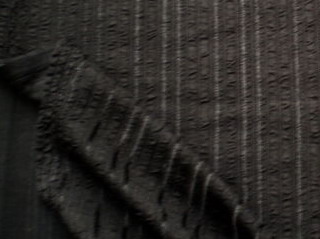 The black fabric below would be ideal for making a body hugging wiggle dress. Vintage polyester/ lycra /nylon dress fabric which feels like crepe, it has two way stretch and is made up of stripes formed of double layers of fabric (the top layer crinkled like seersucker) and single more open weave (the lines that appear shiny).