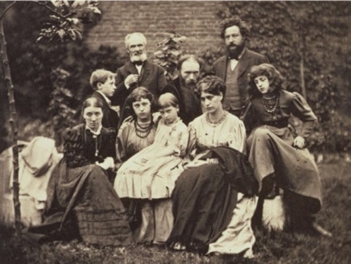 Edward Burne Jones (standing, left), William Morris (standing, right), and their families.